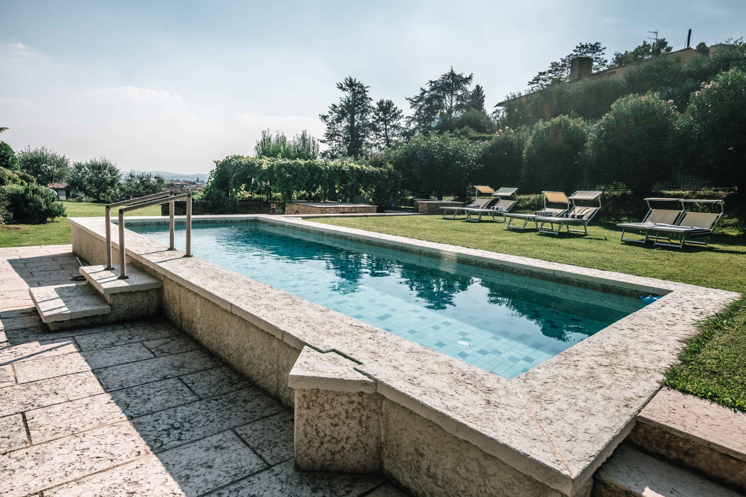 Circondata dal verde delle colline, la piscina è un invito alla calma e alla contemplazione. Qui il tempo scorre lento, accompagnato solo dal suono del vento e dai riflessi del sole sull’acqua.